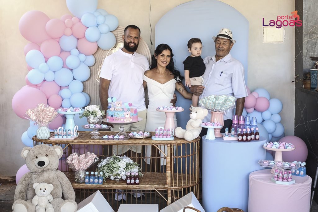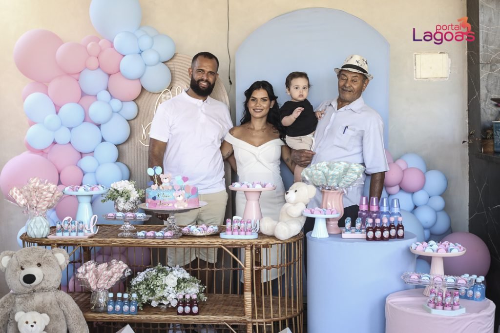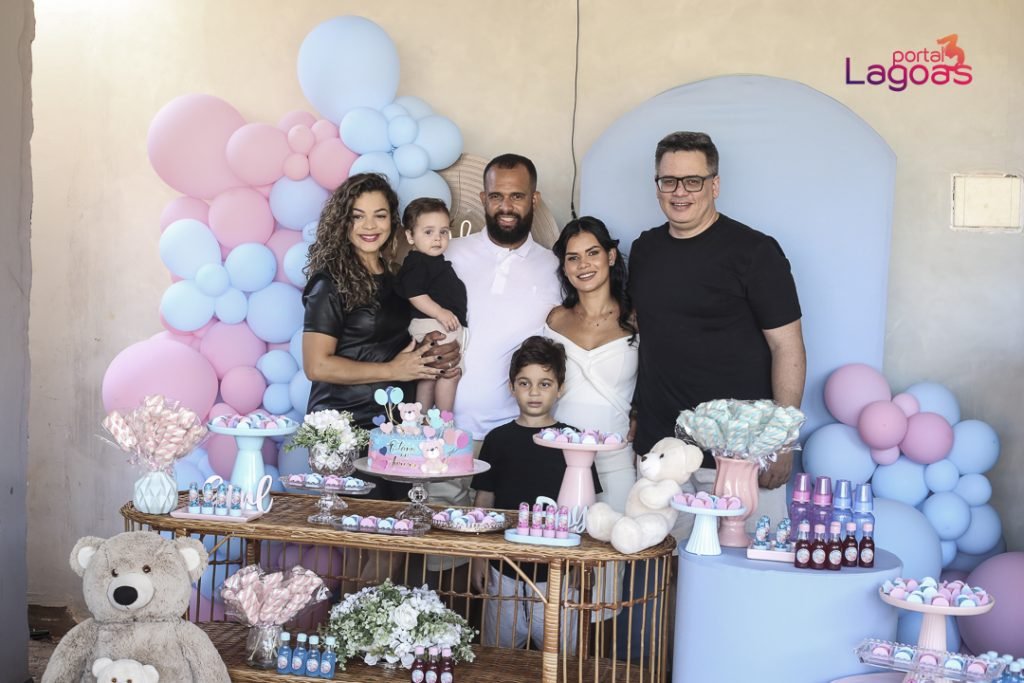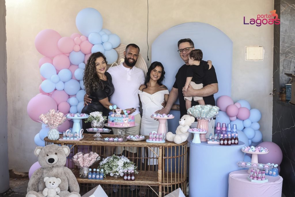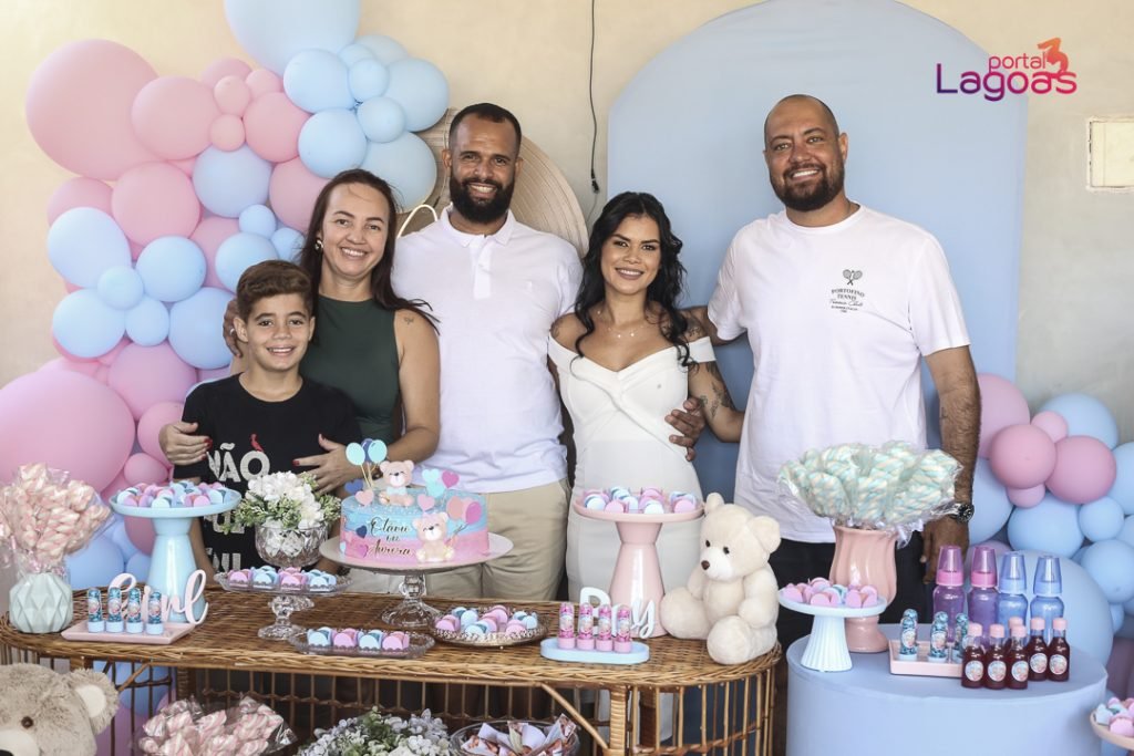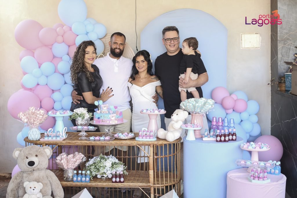 Familiares e amigos mais próximos se uniram nesse momento único, onde o amor e a expectativa pairavam no ar. Um delicioso almoço embalou a celebração, que ganhou ainda mais cor e risadas com brincadeiras animadíssimas, contagiando a todos os presentes.