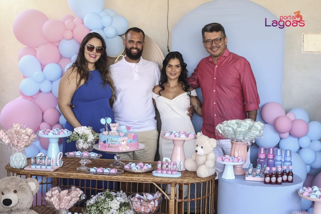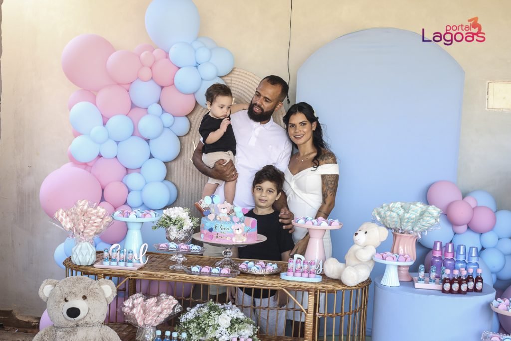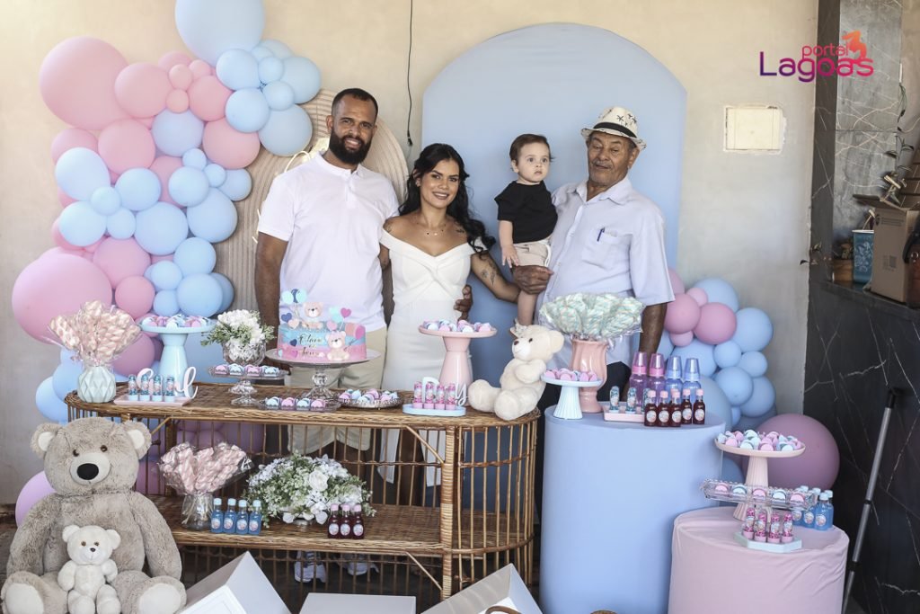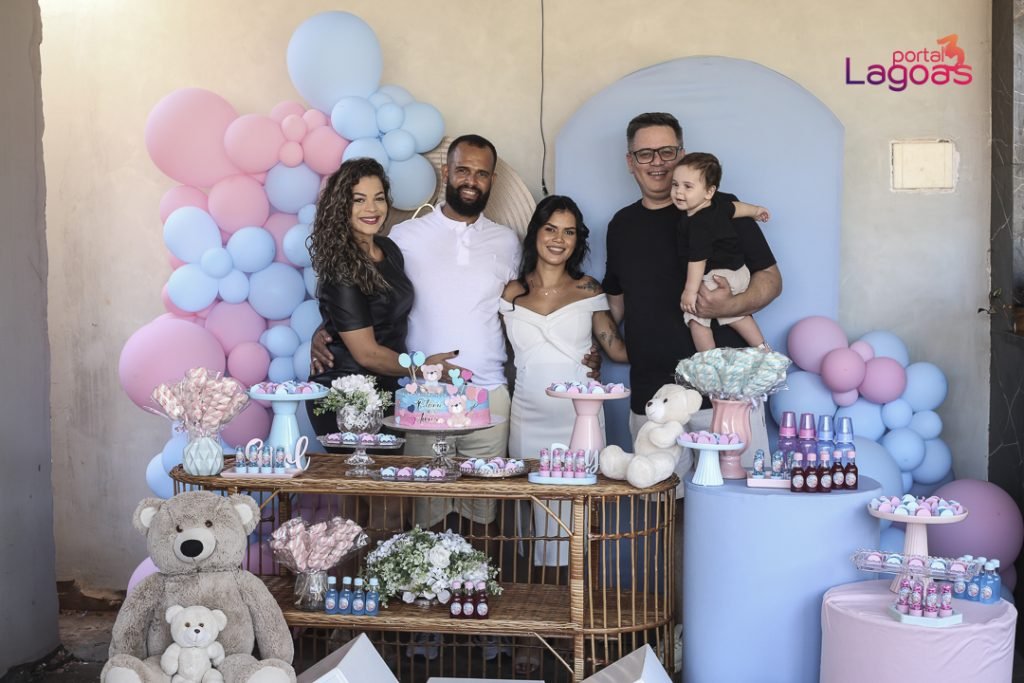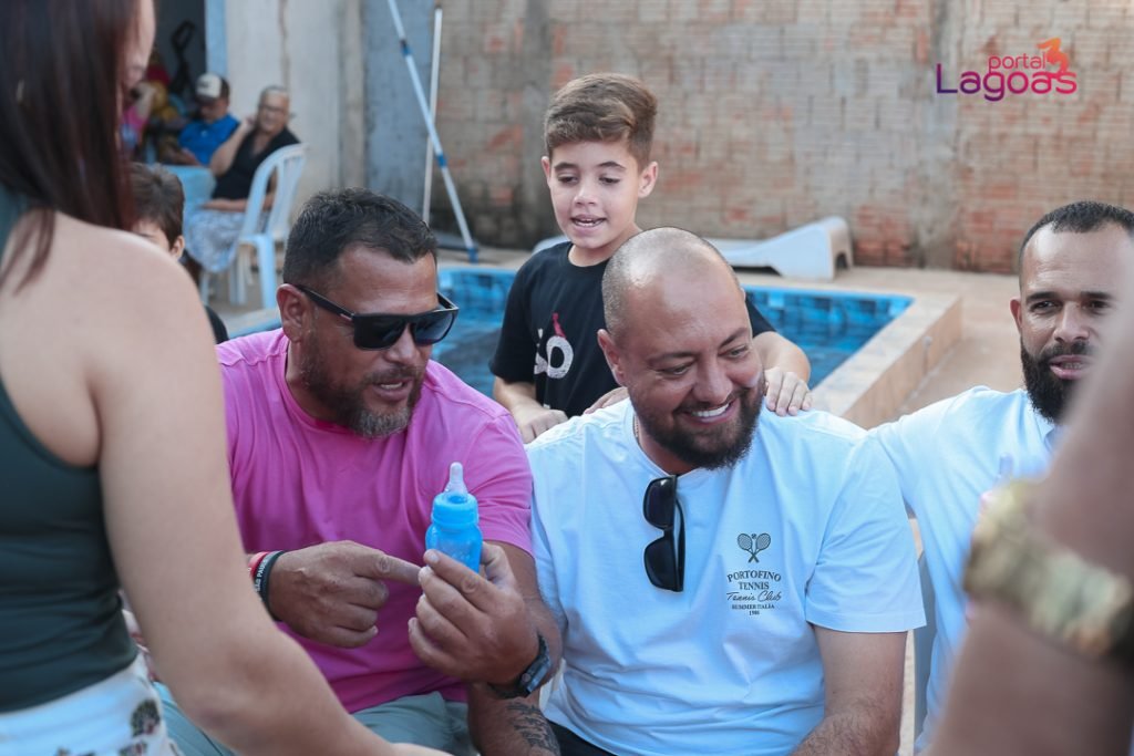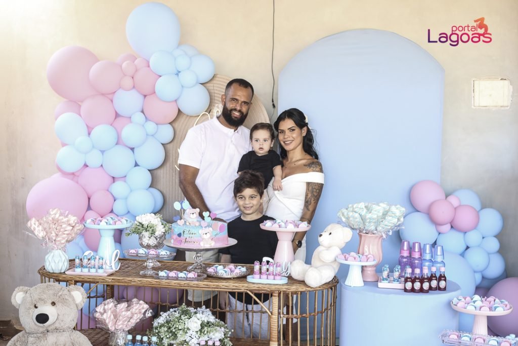 Familiares e amigos mais próximos se uniram nesse momento único, onde o amor e a expectativa pairavam no ar. Um delicioso almoço embalou a celebração, que ganhou ainda mais cor e risadas com brincadeiras animadíssimas, contagiando a todos os presentes.