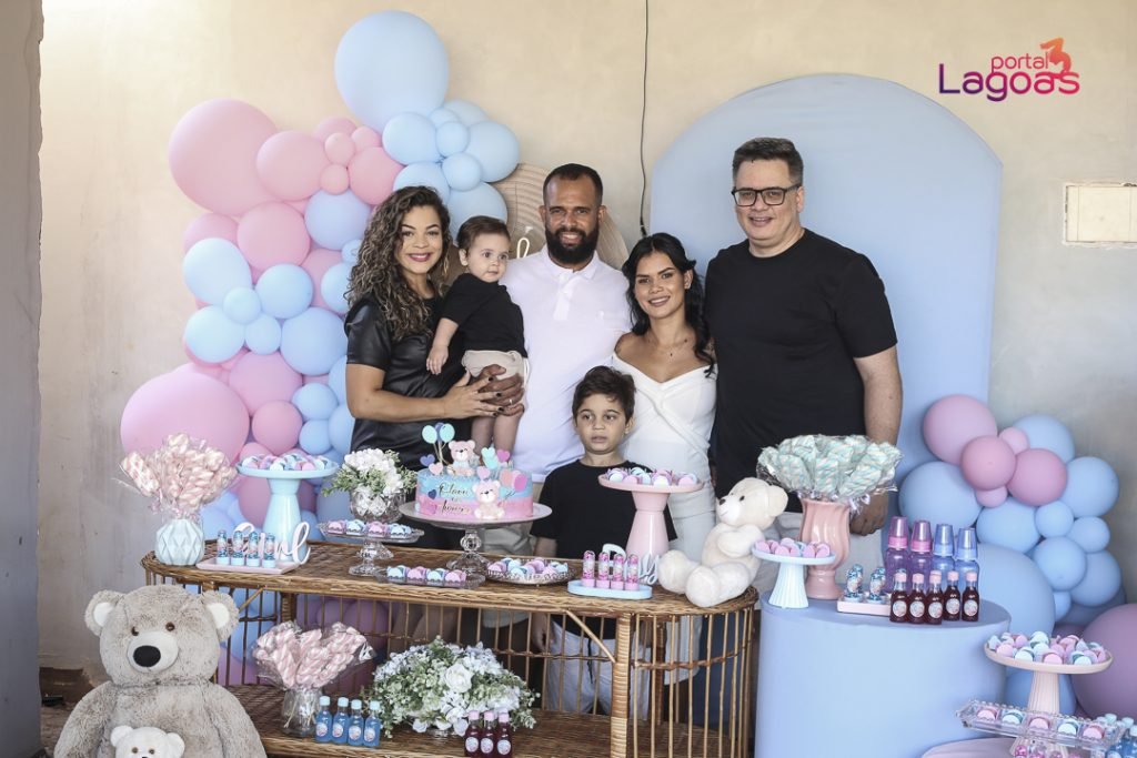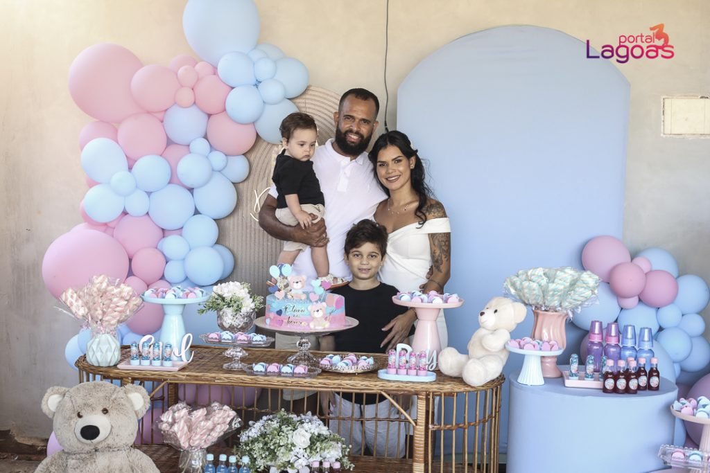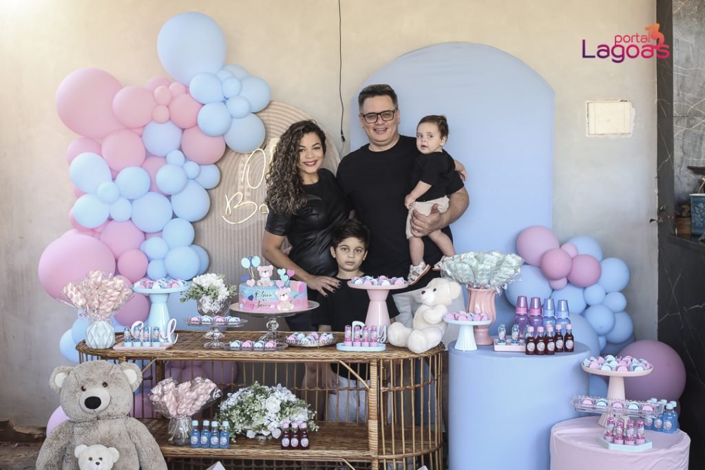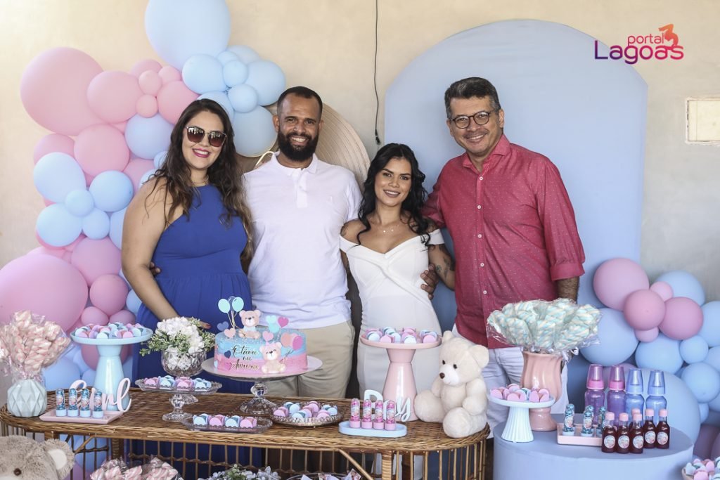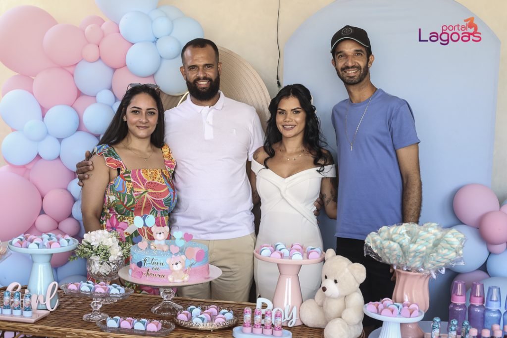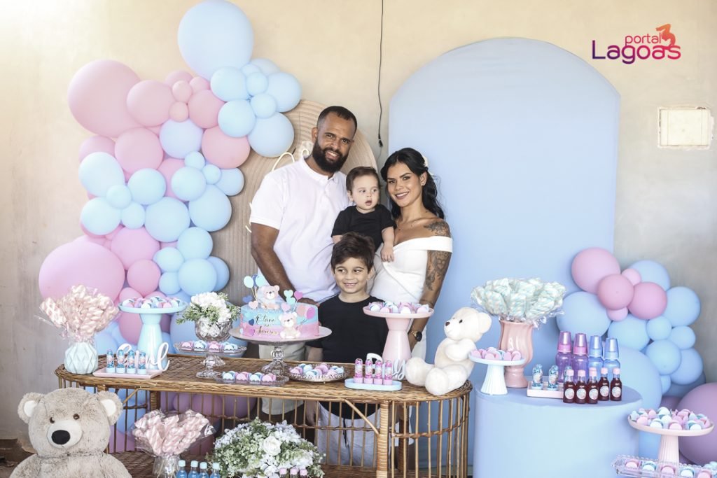 Familiares e amigos mais próximos se uniram nesse momento único, onde o amor e a expectativa pairavam no ar. Um delicioso almoço embalou a celebração, que ganhou ainda mais cor e risadas com brincadeiras animadíssimas, contagiando a todos os presentes.