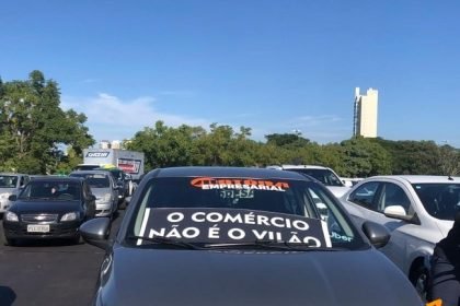 Opondo-se ao fechamento do comércio, os manifestantes abriram um carreata nesta quinta-feira