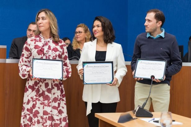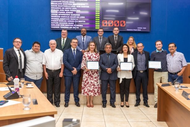 Na manhã desta terça-feira (30), os vereadores se reuniram no plenário da Câmara Municipal de Três Lagoas para realizar a 16ª sessão ordinária, que contou com a entrega de três homenagens e análise de nove matérias em pauta, aprovando quatro, arquivando uma e encaminhando as demais para as comissões permanentes analisarem e emitirem parecer. Também receberam a recém-coroada Miss Três Lagoas 2023.